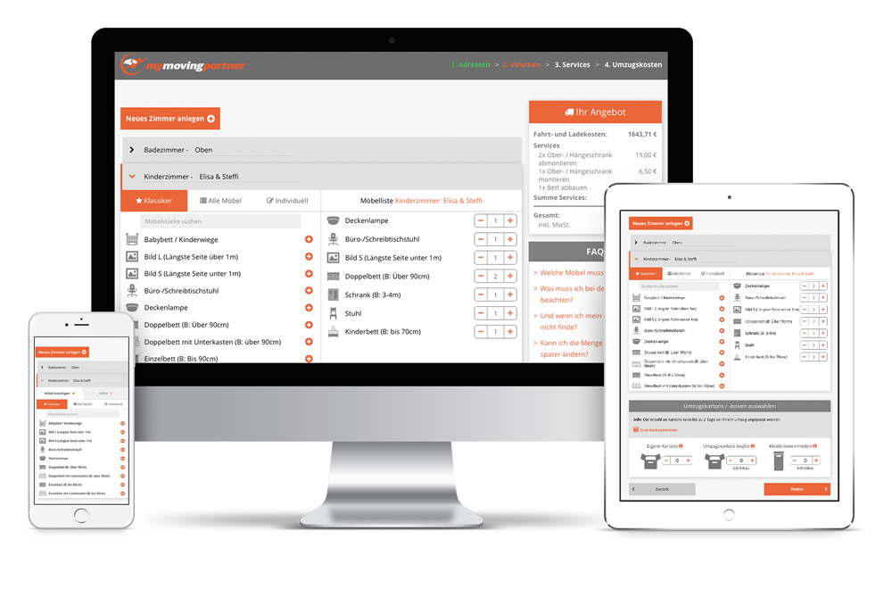 - Schätzung der Umzugskosten mit nur wenigen Klicks.